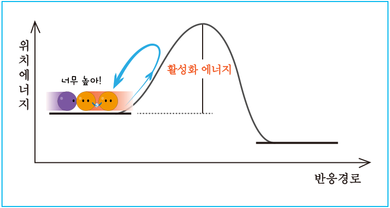 ¿Âµµ°¡ ¿Ã¶ó°¡¸é ¹ÝÀÀ ¼Óµµ°¡ Ä¿Áö´Â ´õ Áß¿äÇÑ ÀÌÀ¯´Â Ȱ¼ºÈ ¿¡³ÊÁö(* ÂüÁ¶: ºü¸¥ ¹ÝÀÀ°ú ´À¸° ¹ÝÀÀ : Ȱ¼ºÈ ¿¡³ÊÁö)¿Í °ü°è°¡ ÀÖ½À´Ï´Ù. ¿Âµµ°¡ ¿Ã¶ó°¡ ¹ÝÀÀ¹° ÀÔÀÚµéÀÌ ´õ ºü¸£°Ô ¿îµ¿ÇÏ¸ç ´õ Å« ¿îµ¿¿¡³ÊÁö¸¦ °®°Ô µË´Ï´Ù. ±× °á°ú Ȱ¼ºÈ ¿¡³ÊÁö ÀÌ»óÀ» °®´Â Ãæµ¹ÀÌ ´õ ¸¹¾ÆÁö¹Ç·Î, ¹ÝÀÀ ¼Óµµ°¡ Ä¿Áý´Ï´Ù.